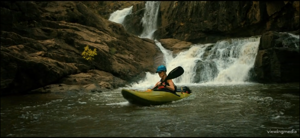 사사는 갑작스러운 상황에 몸이 굳지만 곧 정신을 차리고 자신이 타고 왔던 급류 카약 쪽으로 달려간다. 그녀는 카약에 올라타 강을 따라 내려가기 시작하고, 벤은 노래가 끝날 때까지 기다린 뒤 사사를 쫓기 시작한다. 사사는 거친 물살을 따라 빠르게 이동하지만, 얼마 가지 못해 급류에 휘말리면서 카약을 잃는다. 물 밖으로 나온 사사는 강을 따라 걸으며 벤에게서 멀어지려 한다. 그러던 중 사람 목소리를 듣고 누군가 있다고 판단해 도움을 청하며 그쪽으로 향한다. 하지만 그곳에는 사람이 있는 것이 아니라 벤이 설치해 둔 함정이 있다. 휴대폰에서는 어느 가족의 모습이 담긴 영상이 재생되고 있고, 사사는 그 영상 속 가족들이 이미 벤에게 당한 사람들임을 알게 된다. 벤은 그 근처에서 사사를 기다리고 있다가 석궁으로 조준해 쏜다. 화살은 사사를 맞히지 못하고 빗나가고, 사사는 다시 숲 속으로 뛰어 달아난다. 이후 사사는 다시 급류에 떨어져 물살에 휩쓸려 내려가고, 깎아지른 절벽이 이어지는 구간에 도착한다. 물살이 조금 느려진 틈을 이용해 사사는 절벽을 붙잡고 위로 오르기 시작한다.