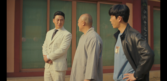 마침내 삼거리파 보스 인성(김정태)을 무너뜨린 세 사람.