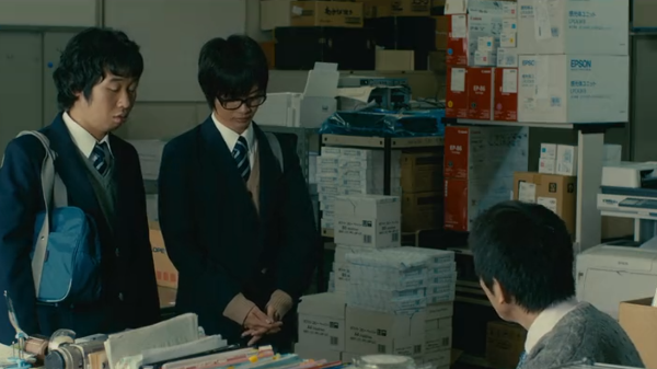 영화부 부장 마에다는 자신의 각본으로 영화를 만들고자 하지만 지도교사는 고집을 꺾지 않는다. 그는 부원들과 힘을 합쳐 독자적인 영화를 준비한다. 옥상에서 촬영을 시도하지만, 취주악부 아야가 연습 중이었다. 양해를 구했지만 아야는 거절했고, 부원들이 찾아오자 어쩔 수 없이 연습을 포기하고 돌아간다.