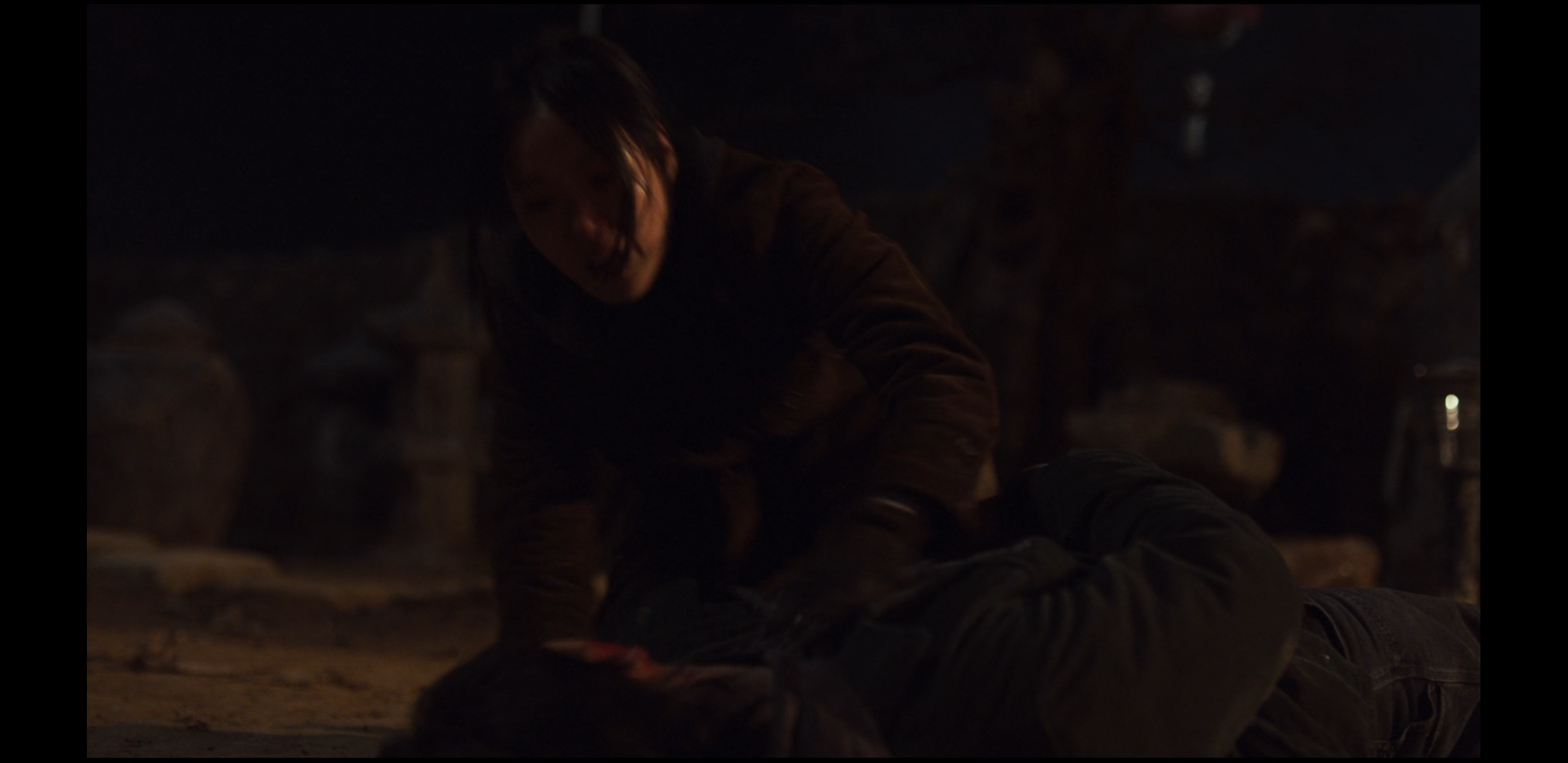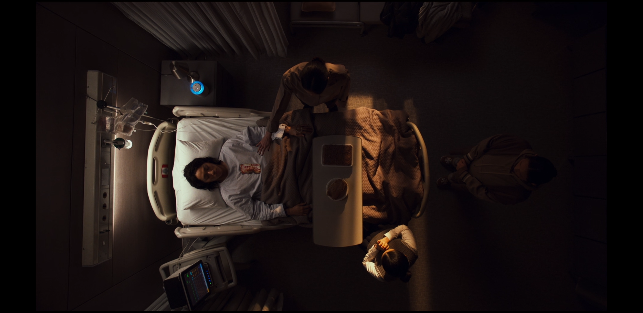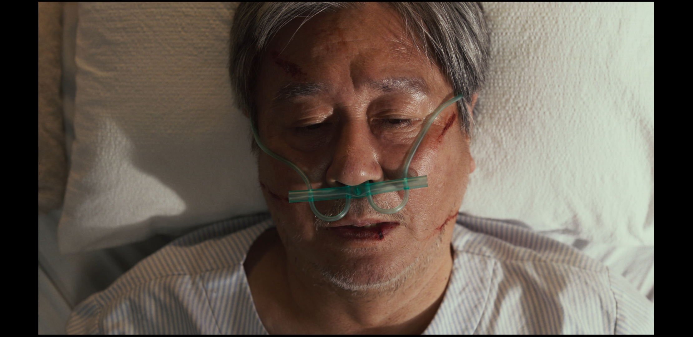 극 후반 기적적으로 깨어나며 영화의 희생과 회복의 상징처럼 그려진다