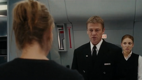 카일은 아랍계 승객들이 전날 밤 자신의 집을 훔쳐본 이들이라며 의심하지만, 그들은 호텔 영수증으로 알리바이를 증명한다. 그럼에도 그녀가 믿지 않자 카슨은 그녀의 남편이 왜 자살했는지 알 것 같다며 조롱 섞인 말을 던진다. 기장은 딸 줄리아가 이미 죽었다는 병원 확인서를 전하며 더 이상 행동을 제지하라 하고, 카일은 수갑이 채워진다.